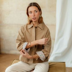 BAGUE EVA Prix 55,00 € remove_red_eye JONC JOSEPHINE Prix 39,00 € remove_red_eye JONC MAUD Prix 55,00 € remove_red_eye BRACELET MADDIE Prix de base 59,00 € -30% Prix 41,30 € -30% JEAN MARTIN Prix 45,00 € remove_red_eye Vous aimerez aussi VESTE MOANA Prix 49,90 € remove_red_eye VESTE ELENA Prix 85,00 € remove_red_eye VESTE JEANNE Prix de base 69,90 € -30% Prix 48,93 € remove_red_eye -30% Veste 100% coton, camel Veste légère, 100% coton Coupe droite, légèrement oversize Doublure et intérieur motif liberty 2 poches Boutons tout du long Mesures disponibles pour la taille S, Claire mesure 1m83 et porte la taille S