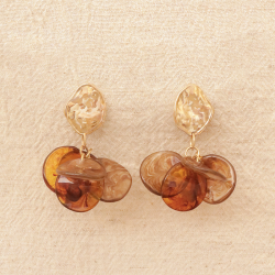 Boucles d'oreilles pendantes, pétales marron